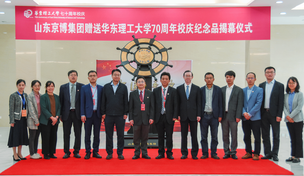 学校举行山东京博控股集团赠送70周年校庆纪念品揭幕仪式
