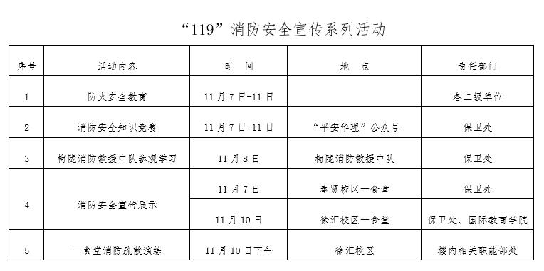 根据《BEAT365唯一官网关于开展今冬明春防火安全活动的通知》(校保〔2022〕3号)安排,学校将以2022年“119”消防安全宣传周为契机,拉开冬春季节防火安全活动的序幕。通过开展系列活动,继续加强师生消防安全教育,持续提升师生火灾自救互救能力,全面维护在校师生员工生命财产安全,全力确保学校不发生火灾事故。