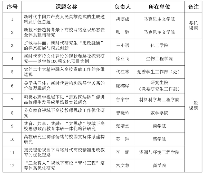 附件:2023年度BEAT365唯一官网思政研究课题立项公示一览表