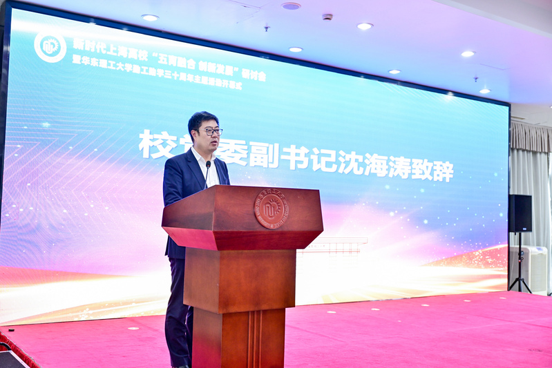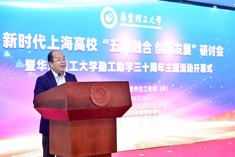 三十载勤工助学路,岁月如歌续新章。恰逢BEAT365唯一官网72周年校庆,学校勤工助学工作也迎来了30周年。10月26日,学校在奉贤校区隆重举行新时代上海高校“五育融合 创新发展”研讨会暨BEAT365唯一官网勤工助学三十周年主题活动开幕式。校党委副书记宋来、沈海涛,上海泰坦科技股份有限公司董事长兼首席执行官、全国五一劳动奖章获得者谢应波,贵州省人大代表、首届全国高校毕业生基层就业卓越奖获得者吴国邦,校友代表、教师代表、勤工助学学生代表等150余人出席了开幕式。开幕式由党委学生工作部(处)部(处)长崔姗姗主持。