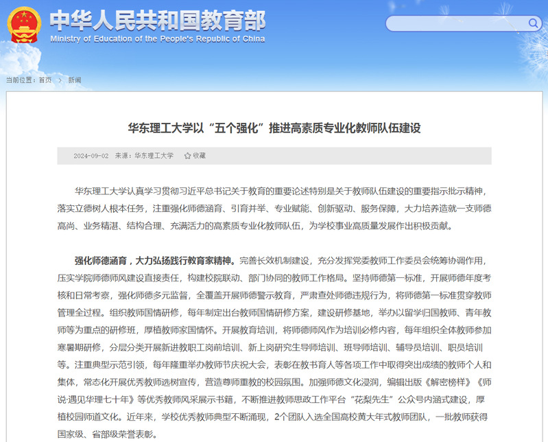 教育部网站专题报道学校“四个注重”扎实推进教师思想政治和师德师风建设工作