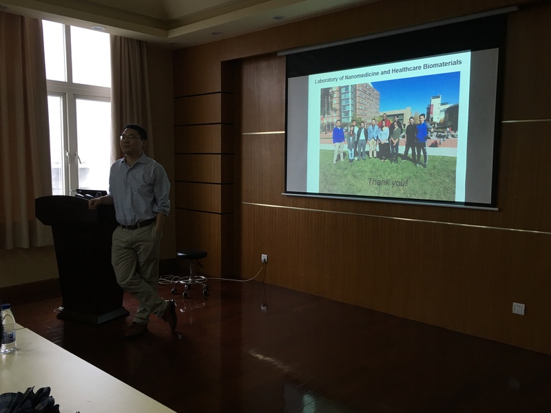 On invitation of Professor Liu Ruinhui of School of Material Science and Engineering, ECUST, Prof. Xu Xiaoyang from New Jersey Institute of Technology paid a visit to ECUST on Dec. 26th , 2016 and gave a lecture entitled “Engineering Nanoparticles for Diagnostics and Therapeutics” which was focused on the development of new nanoparticles in self-assembly control, biological diagnostics, bio-imaging, anticancer drug delivery, and targeted therapies. During the Question and Answer section, Professor Xu responded in detail to the questions raised by teachers and students present at the lecture.