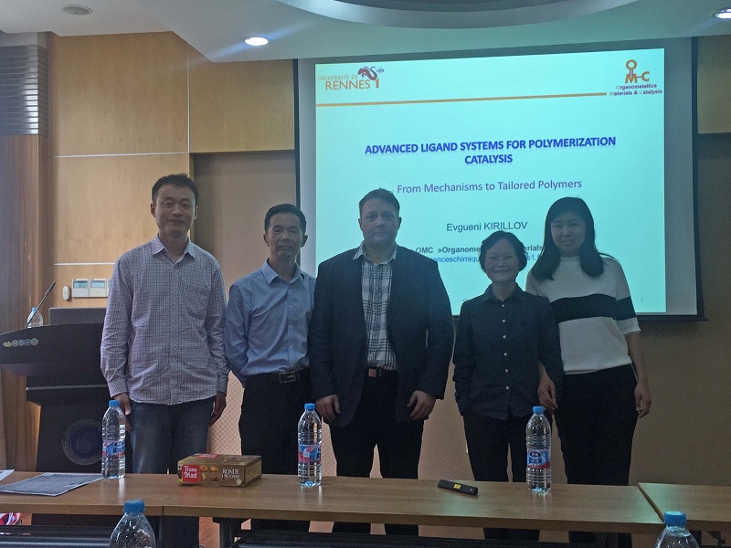 At the invitation of Prof. Liu Baiping, Prof. Evgueni Kirillov, from the Institute of Chemical Science, Univerisity of Rennes 1, France, paid a visit to ECUST on May 25th, 2017. Prof. Evgueni Kirillov visited the Joint National Key Laboratory of the School of Chemistry and the School of Chemical Engineering and gave a lecture entitled “Advanced Ligand Systems for Polymerization Catalysis” which was chaired by Prof. Liu Baoping. More than 40 granduate students from the School of Chemical Engineering, the School of Chemistry and Molecular Engineering and the School of Material Science and Engineering attended the lecture.