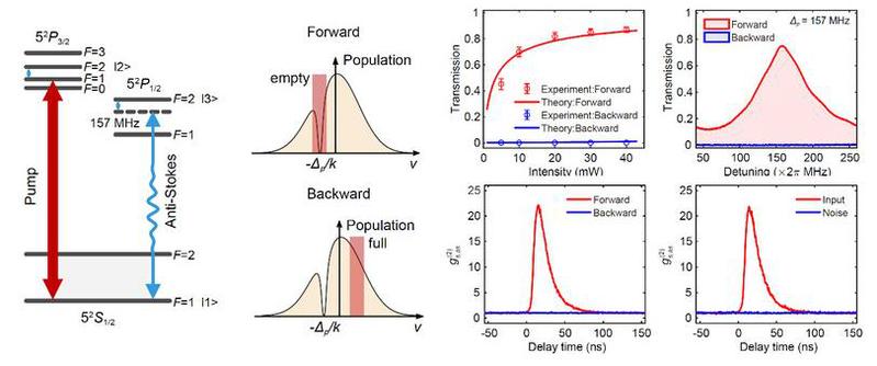 The research successfully applied the principle of non-magnetic nonreciprocal transmission based on the thermal motion of atomic gas to true single photon. The article is co-authored by Associate Professor Zhang Shicheng and doctoral candidate Zhan Yifan, and corresponding authored by Professor Niu Yueping. The research work has been financially supported by the National Natural Science Foundation of China, Shanghai Natural Science Foundation, Sailing and Morning Light Project.