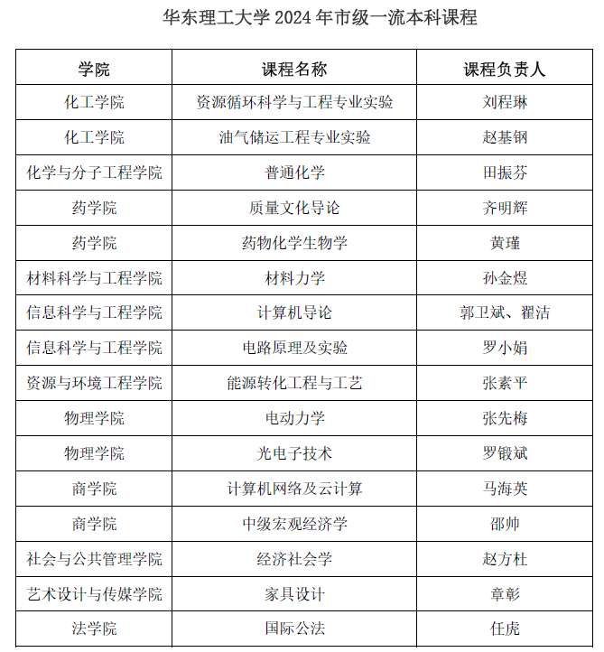 近日,上海市教委公布了2024年度上海高等学校一流本科课程认定结果,共计346门课程获得认定,我校16门课程榜上有名。截至目前,我校共有上海市一流本科课程79门。