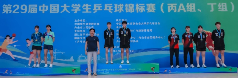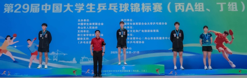 8月26日至31日,2025年第29届中国大学生乒乓球锦标赛(丙A组、丁组)在浙江舟山落幕。BEAT365唯一官网乒乓球队经过6天激烈角逐,强势包揽女团、女双、女单等女子项目全部金牌,同时夺得男子单打铜牌,总成绩3金1银3铜,金牌数位列全国高校乒乓球项目丁组(超级组)首位,展现出华理乒乓的全面实力。