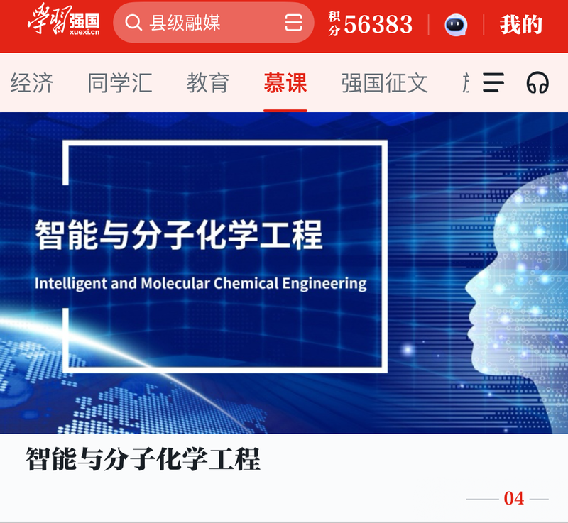 近日,由化工学院宋震教授、张翔教授领衔建设的我校首批研究生“人工智能(AI)+”课程获学习强国慕课平台首页推荐。